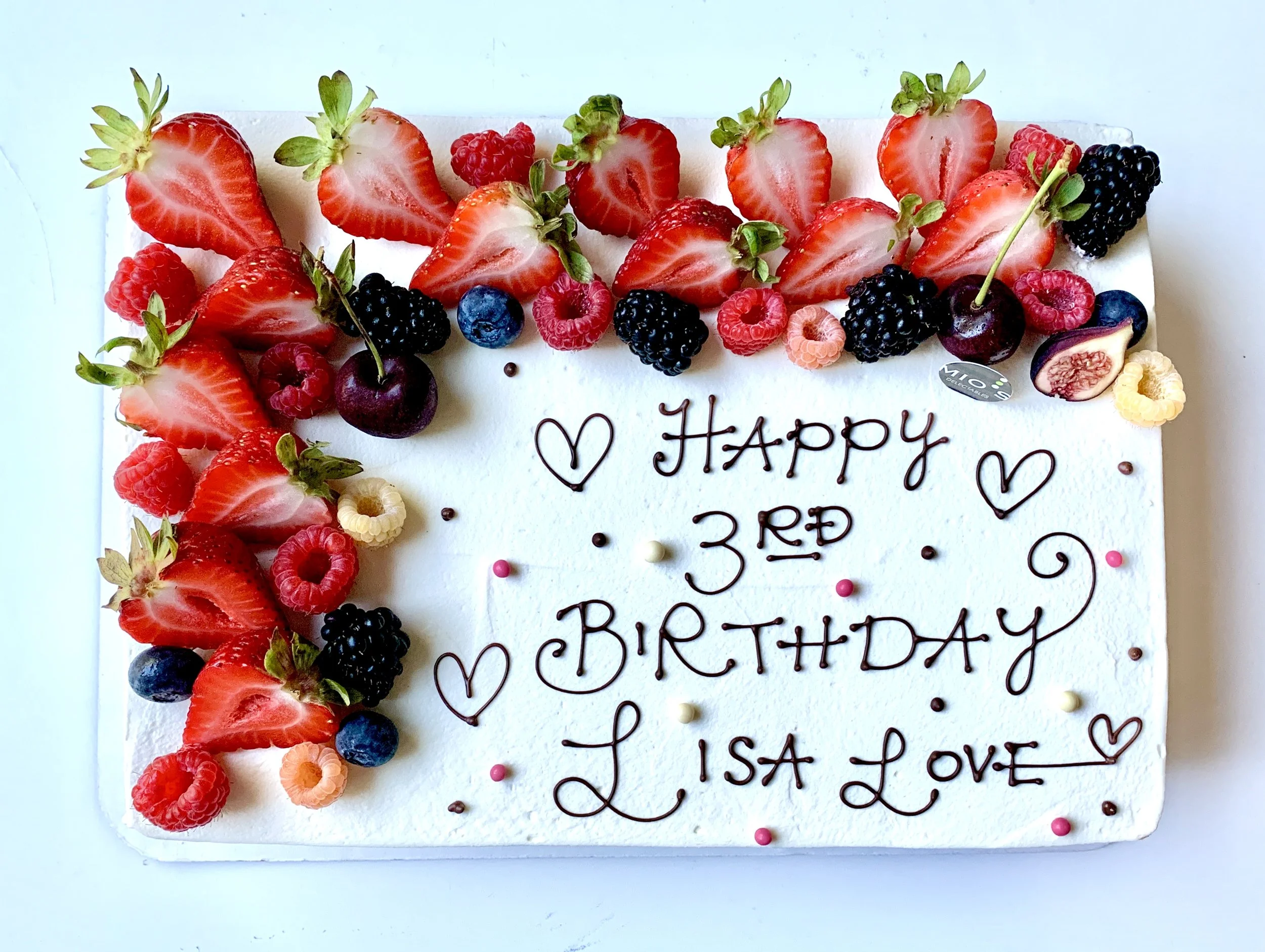 ケーキにメッセージの記入をご希望の場合は、フルーツのデコレーションが少なくなります。