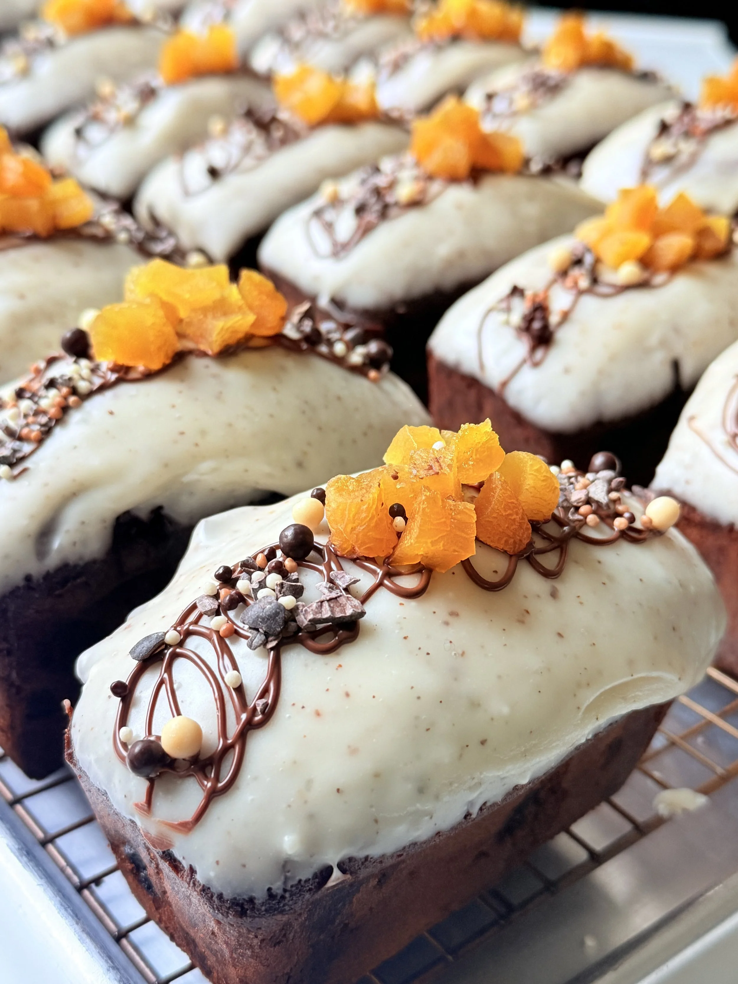 Finished with rich brown butter whiskey icing. Sweet, nutty, a little boozy.