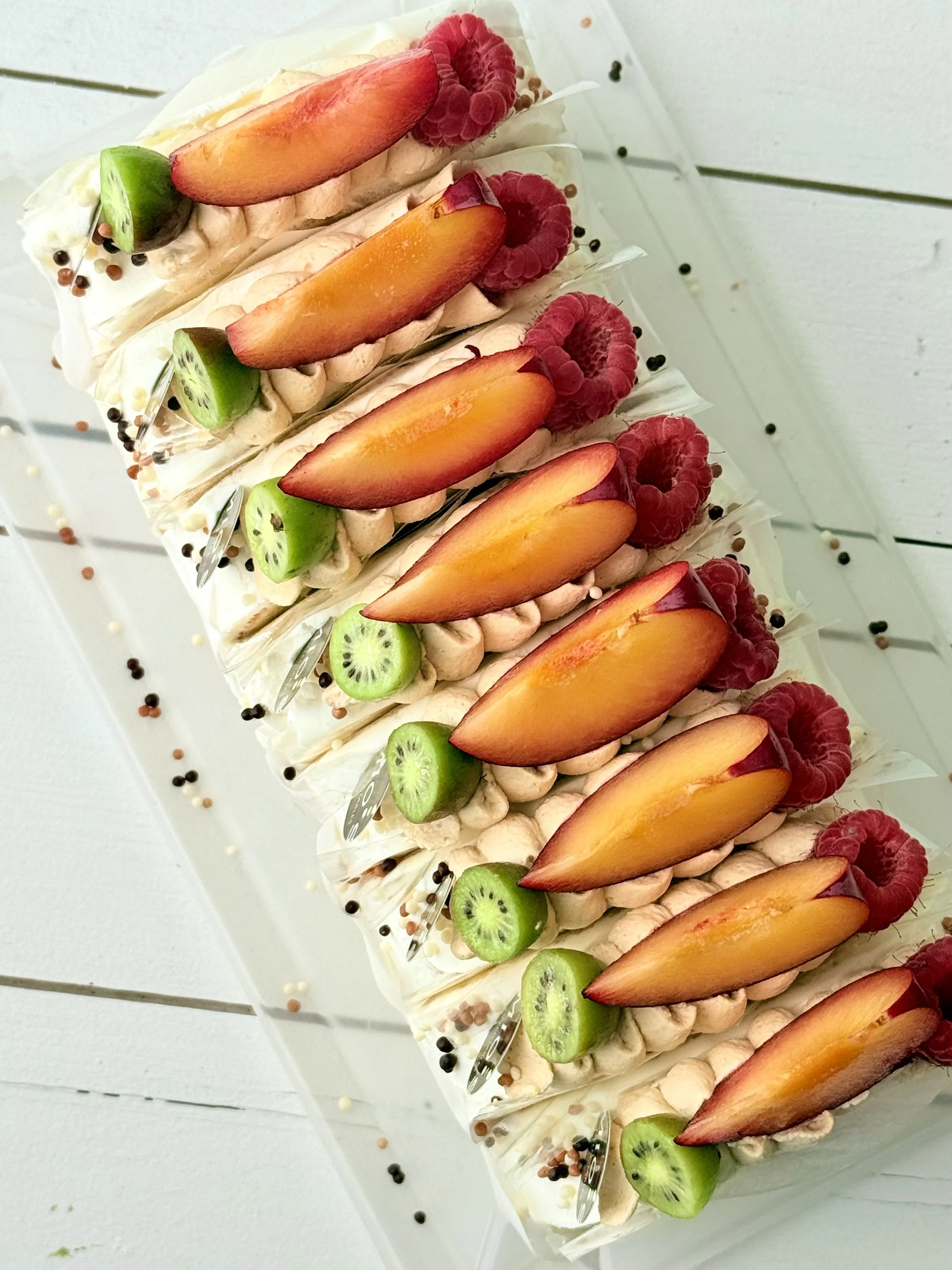 Cozy up this fall with our tender torte, made from juicy local ruby apples and tart cranberries. Each bite brings the warmth of autumn, with the perfect balance of sweet and tangy flavors.