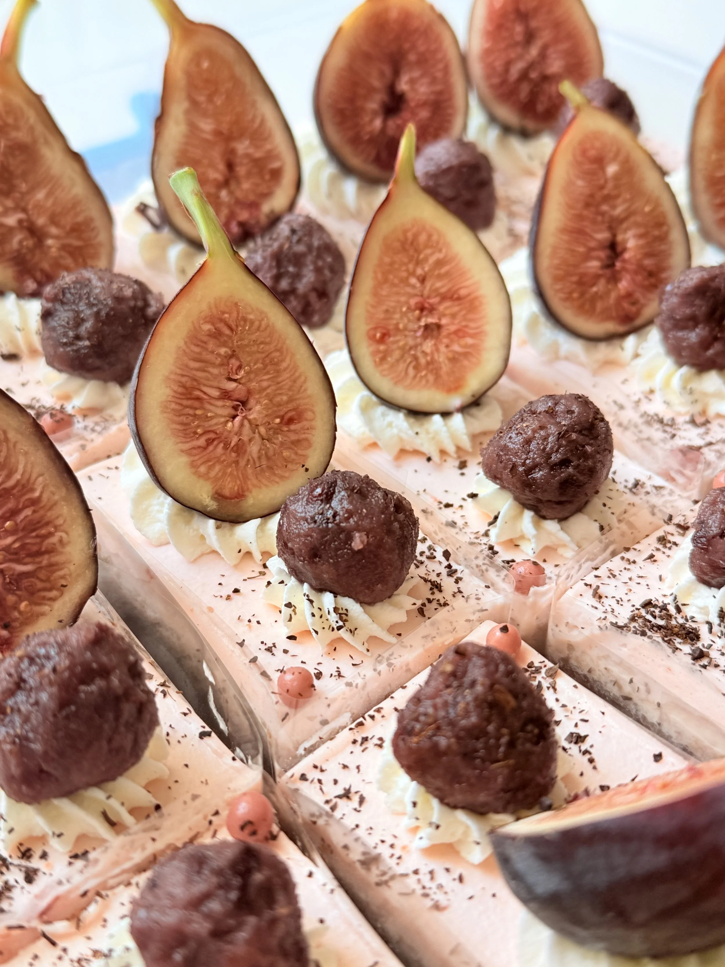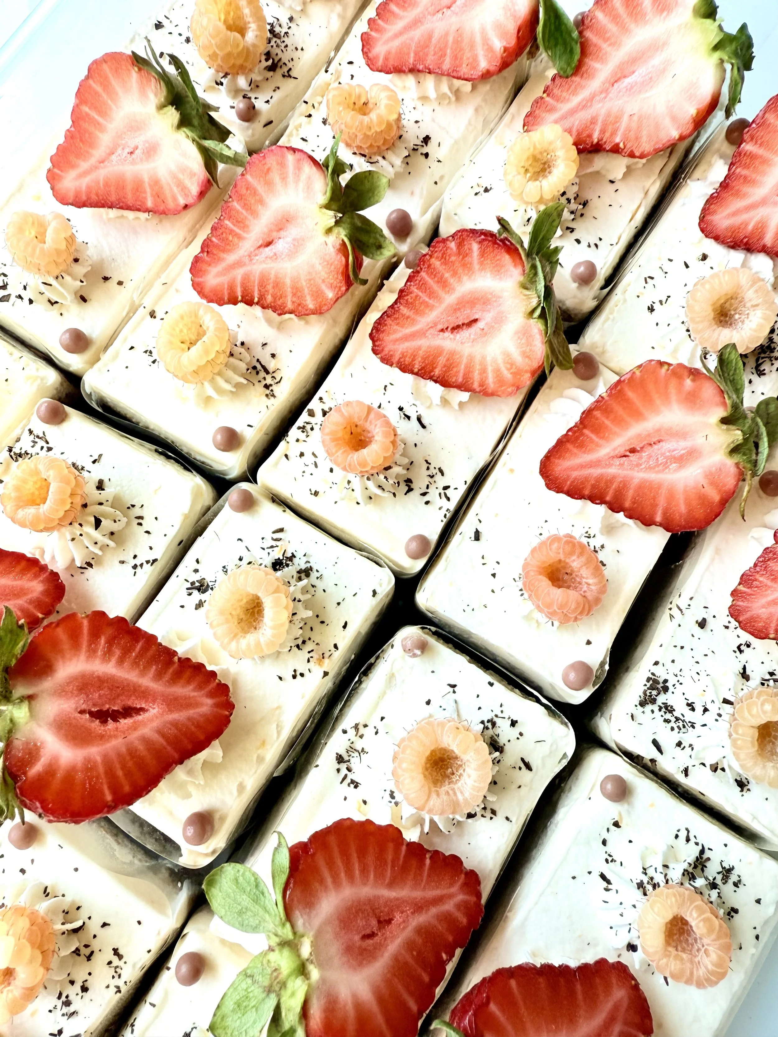 * Fresh Strawberry Custard Tart / Strawberry Pate de Fruit Strawberry Raspberry Ganache, White Chocolate coating