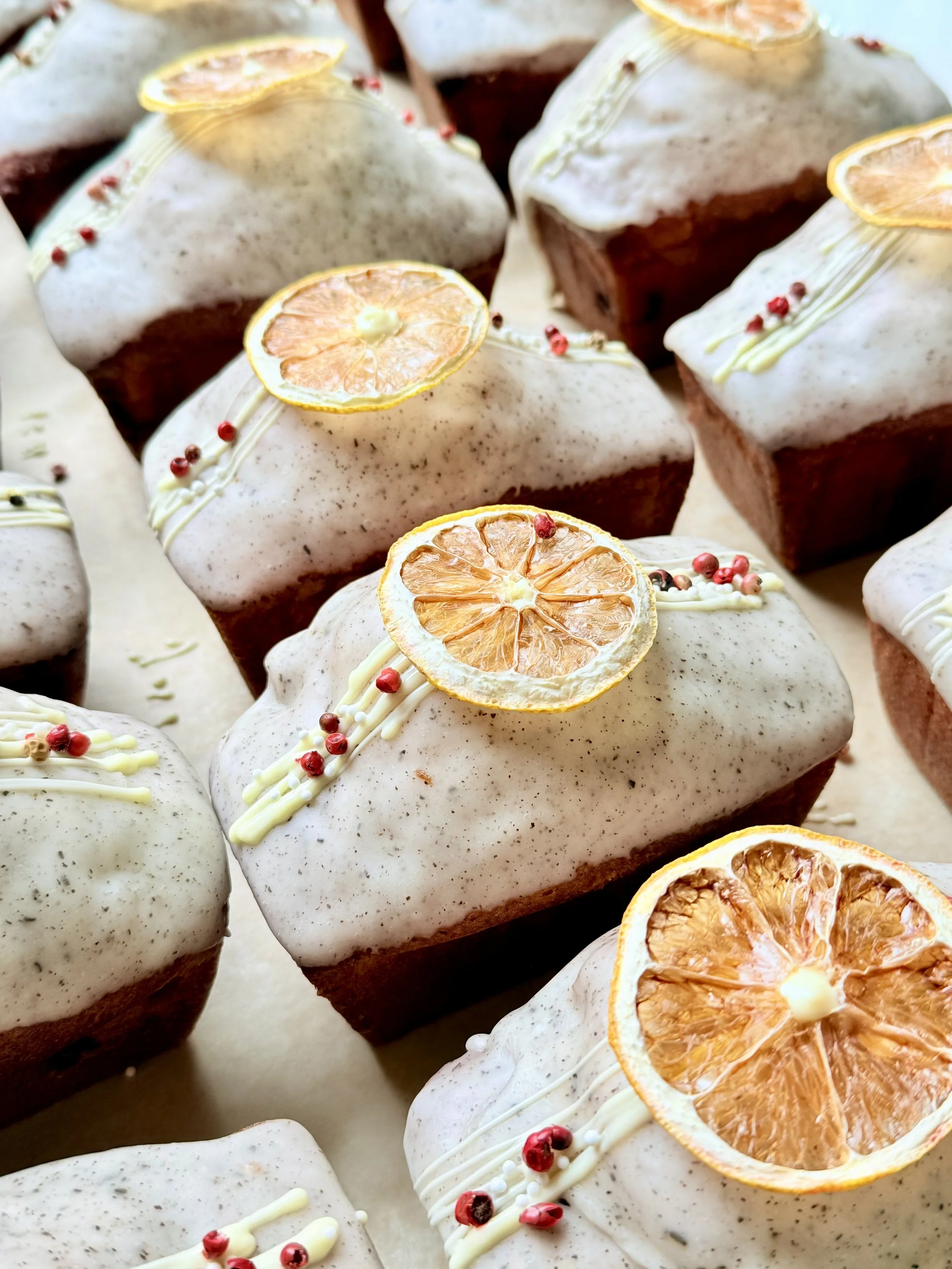 EARL GREY SHORTCAKE WITH FRESH GRAPEFRUIT AND SWEET CHERRY COMPOTE Delicate cake infused with Earl Grey, topped with refreshing grapefruit and cherry compote. Perfect for tea time or a sweet moment anytime!