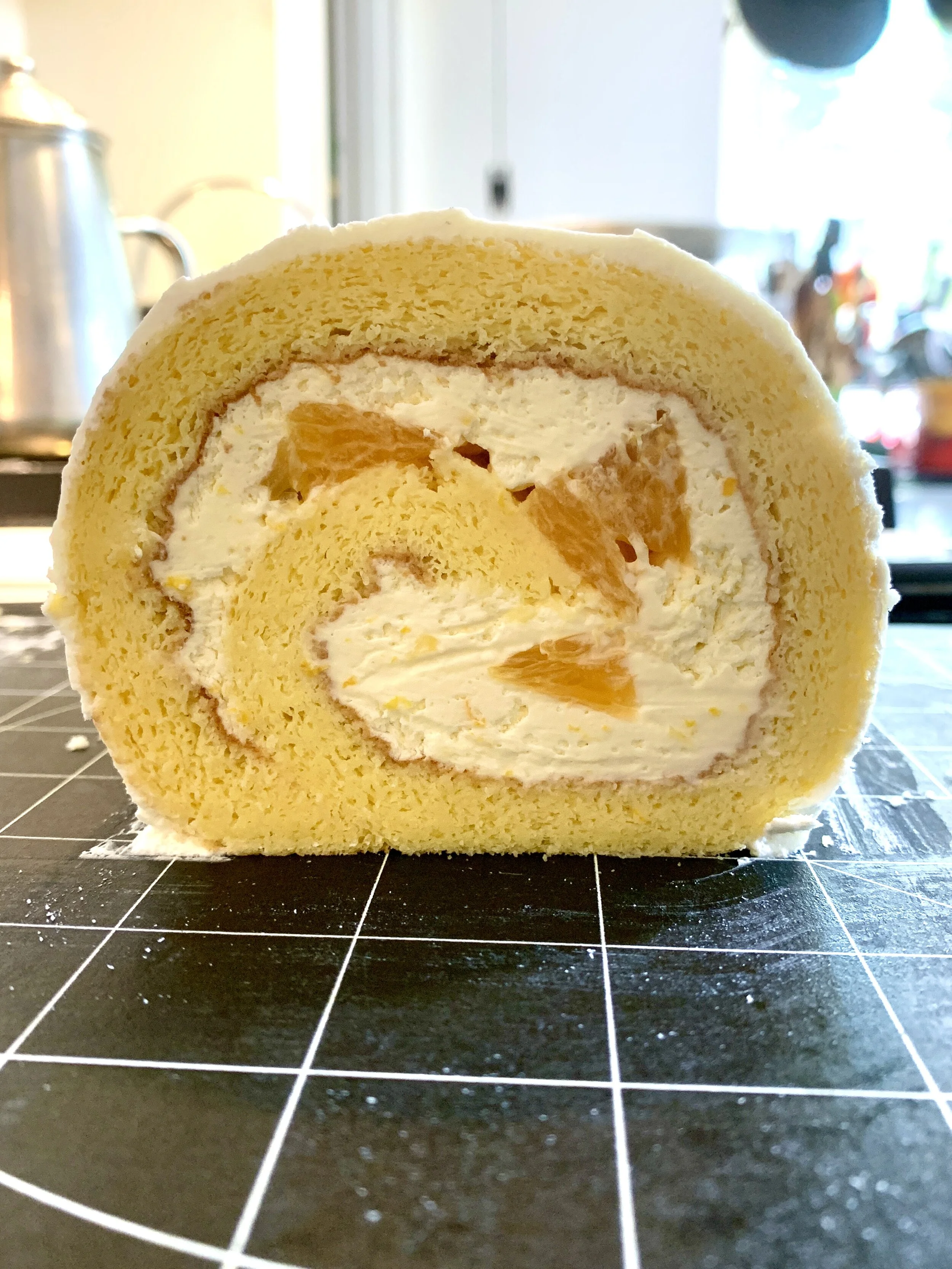 *Gluten-free Citrus Swiss roll Cake w/ Lemon Cake & Fresh Orange, Orange Zest Cream