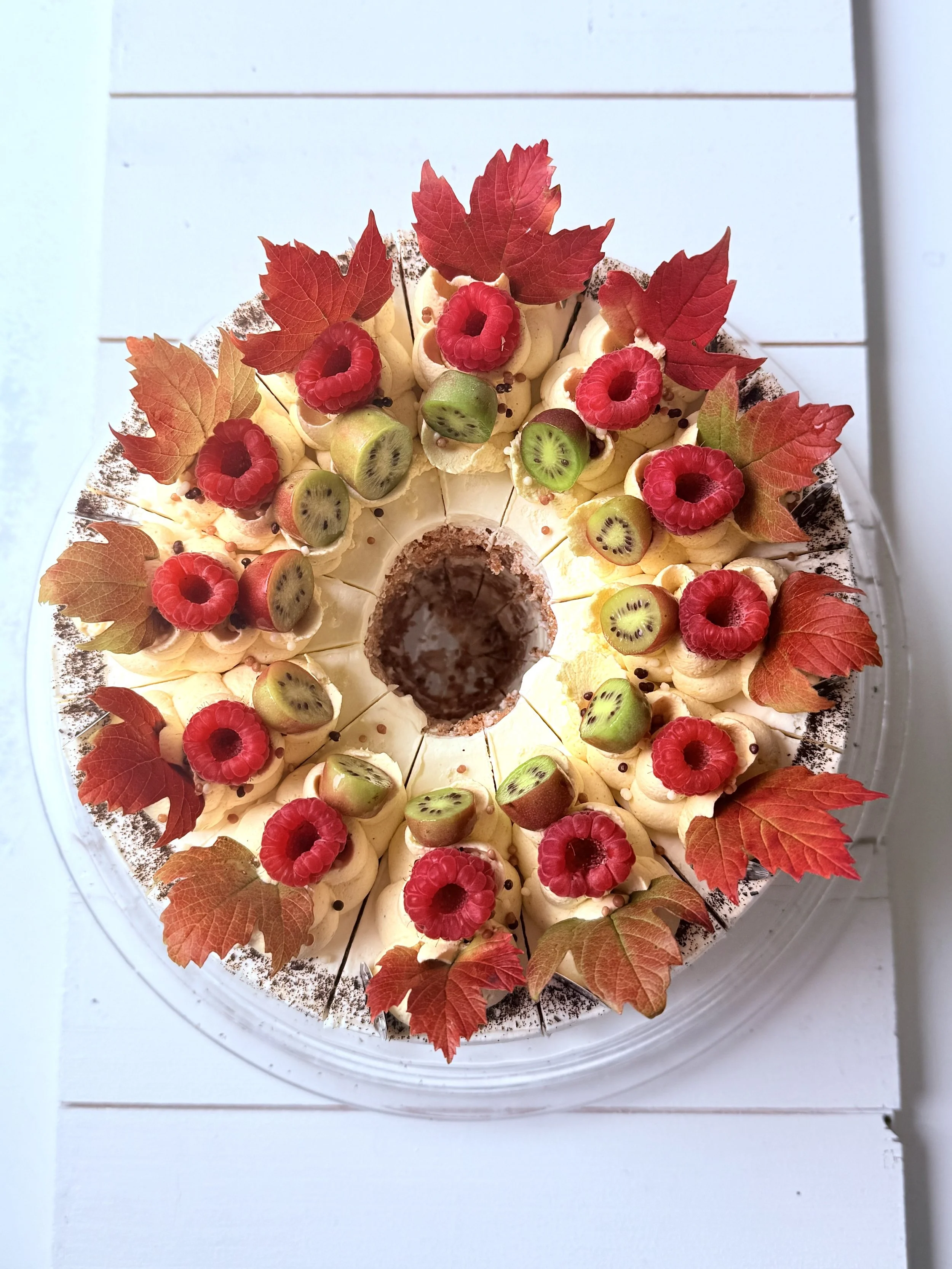 Cozy up this fall with our tender torte, made from juicy local ruby apples and tart cranberries. Each bite brings the warmth of autumn, with the perfect balance of sweet and tangy flavors.