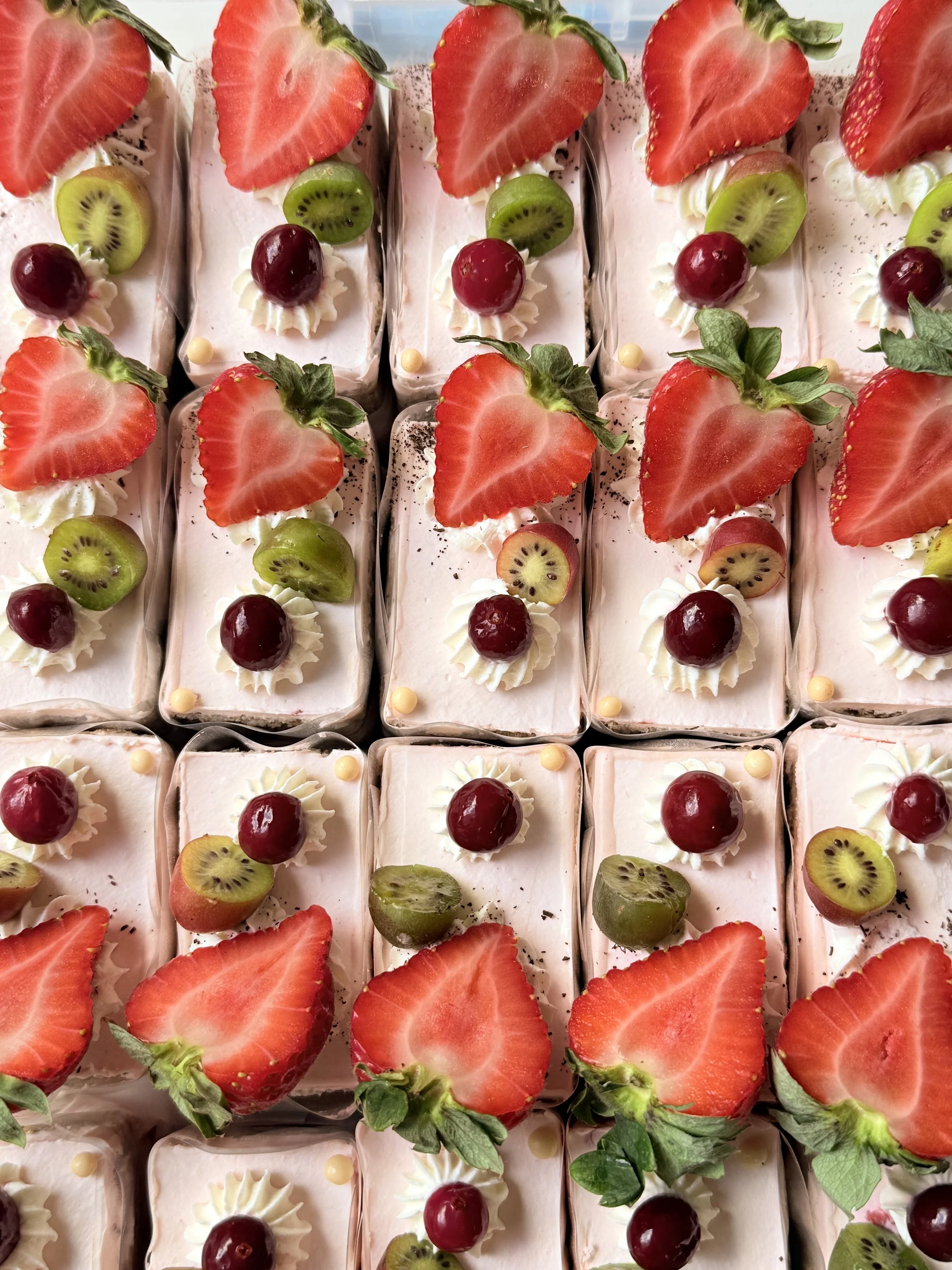 * Fresh Strawberry Custard Tart / Strawberry Pate de Fruit Strawberry Raspberry Ganache, White Chocolate coating