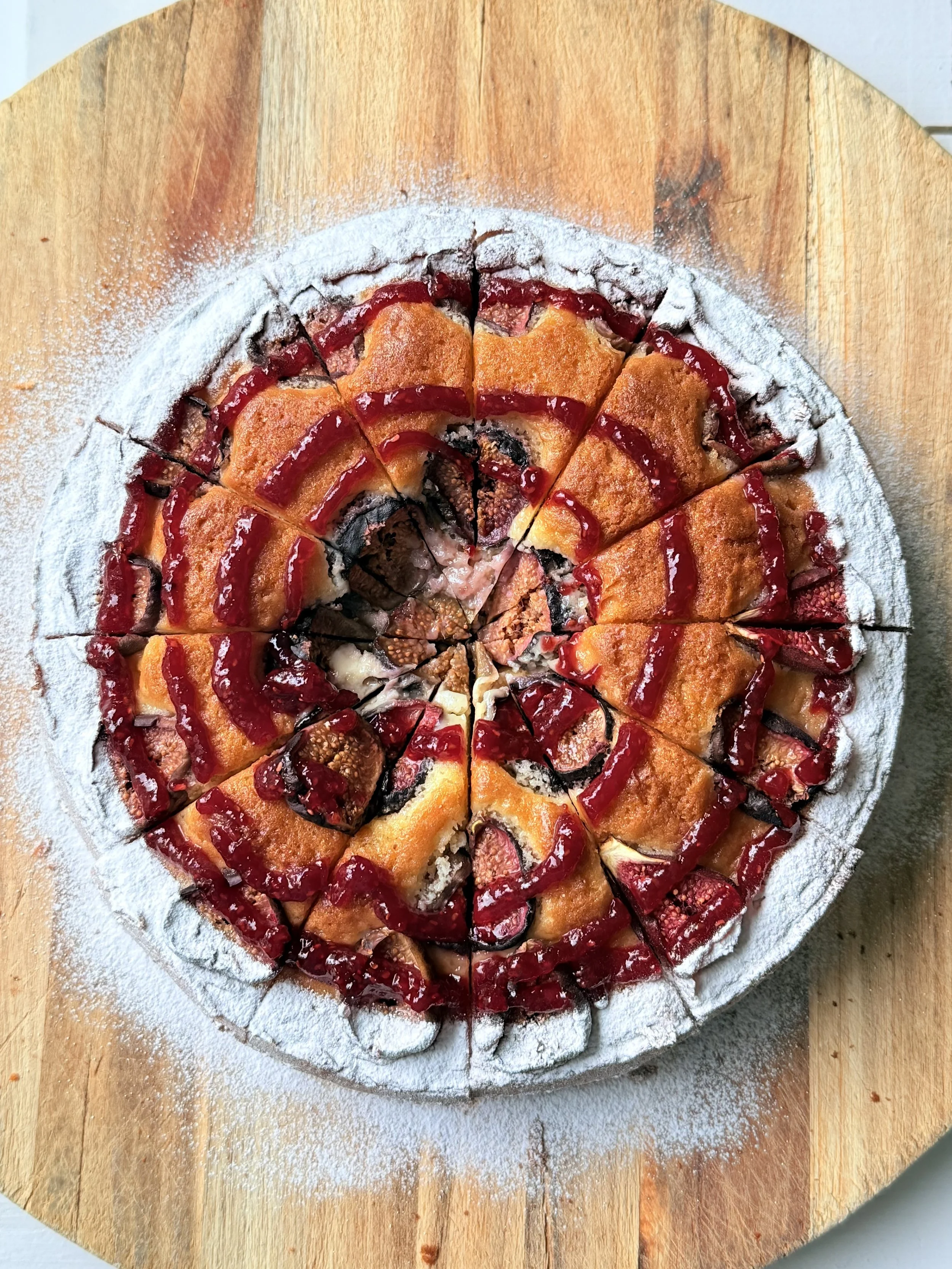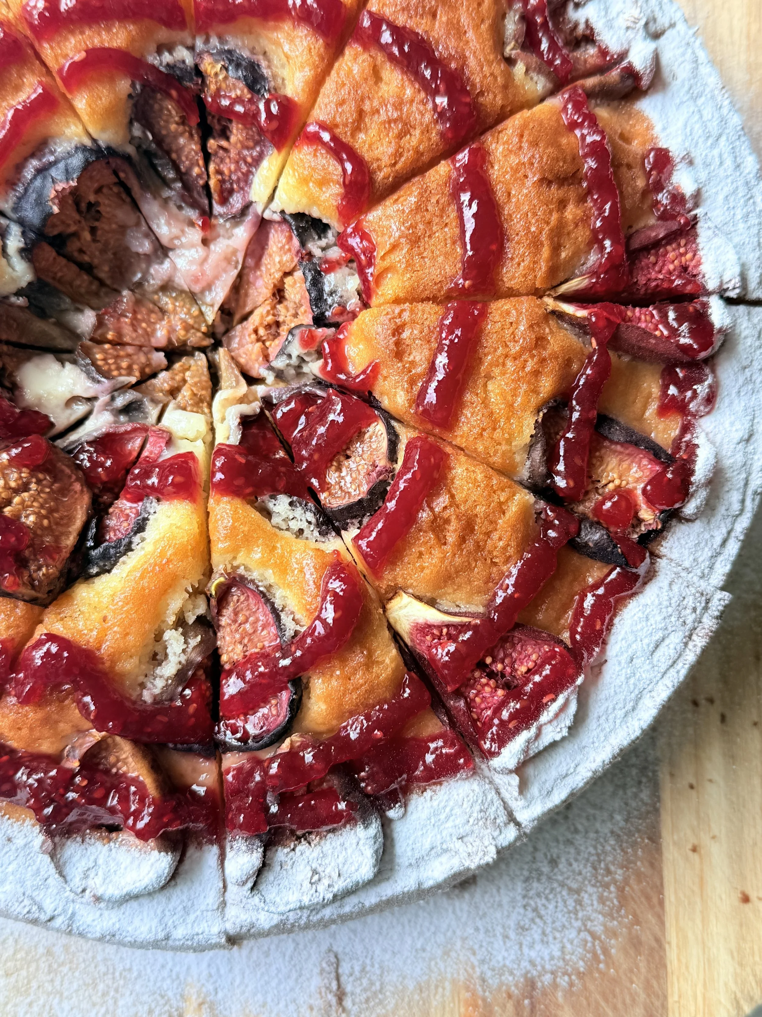 A decadent torte layered with luscious fig and tangy raspberry confiture, offering a perfect balance of sweetness and tartness.