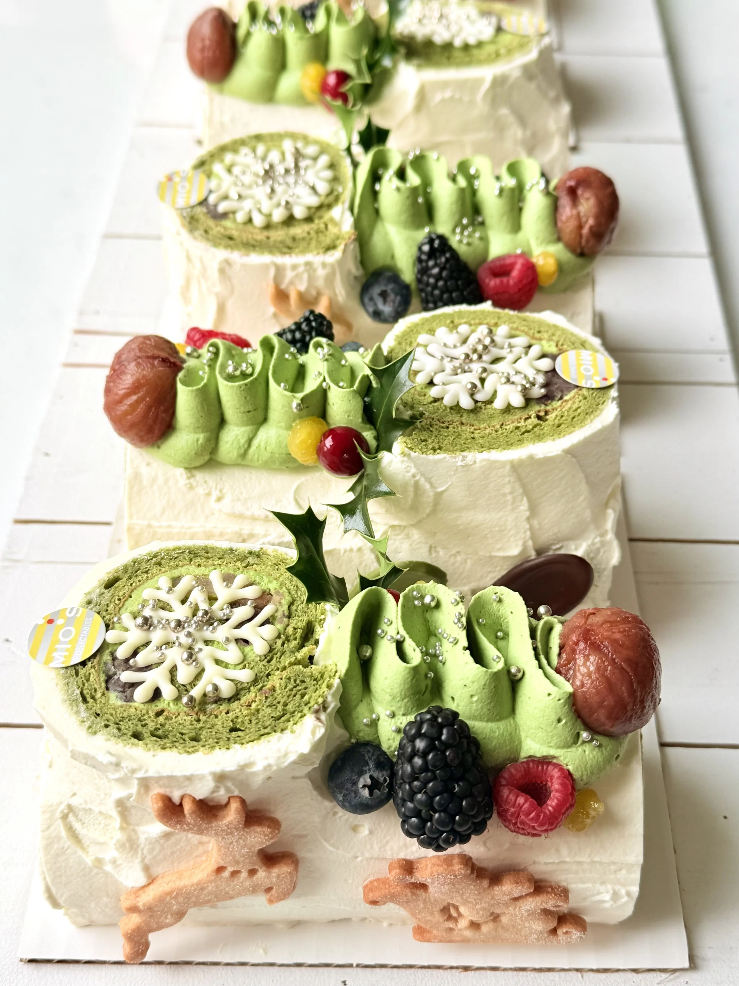 Delicate layers of chestnut-flavored crêpes are combined with soft vanilla cake crumbs, rich chestnut paste, and silky chestnut diplomat cream, finished with tender candied chestnuts. A refined dessert that highlights the rich, nutty flavor of chestnuts in multiple textures.