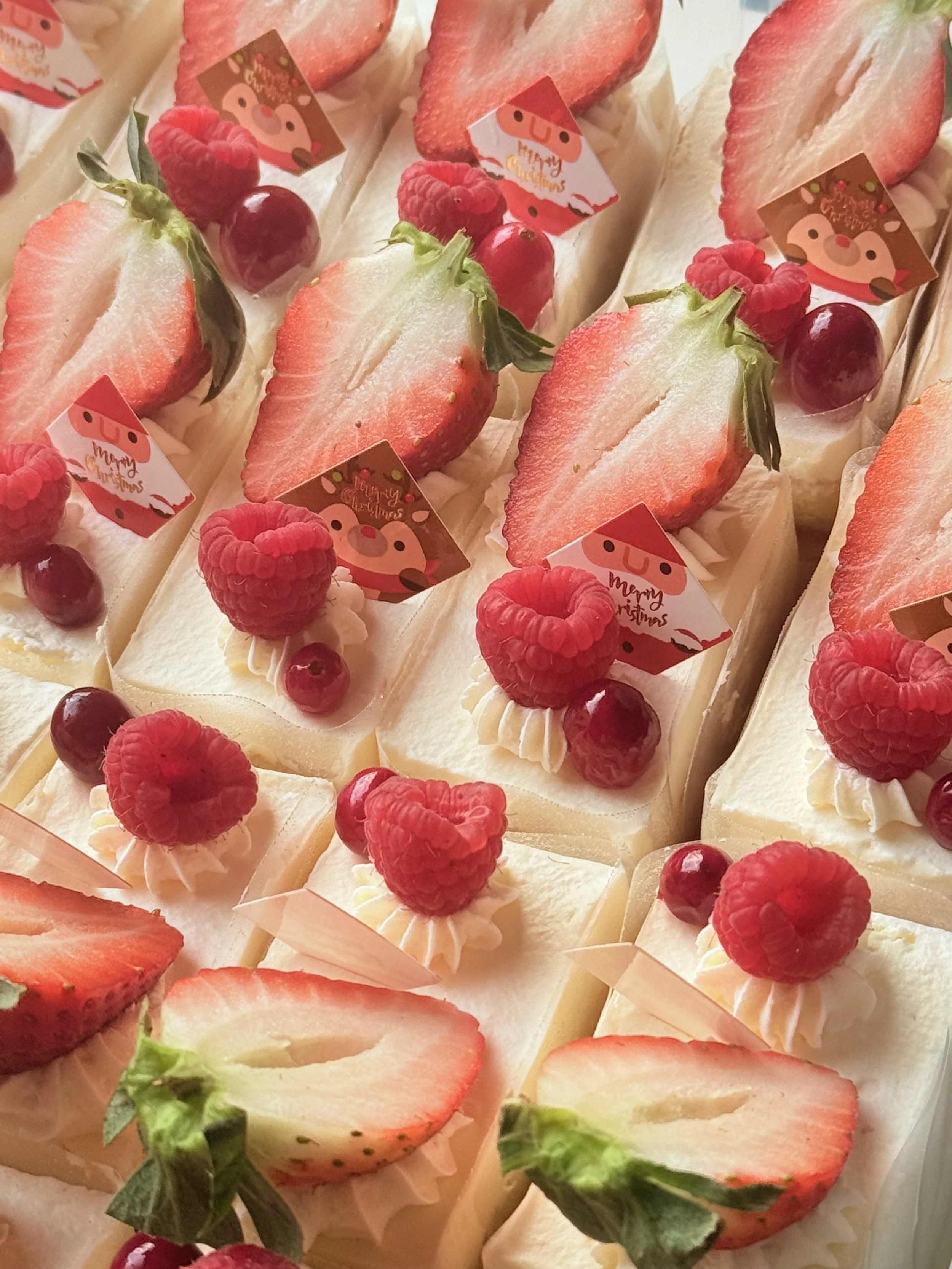 This is a Christmas version of our classic strawberry shortcake. The Santa and reindeer decorations will help get everyone in the holiday spirit!