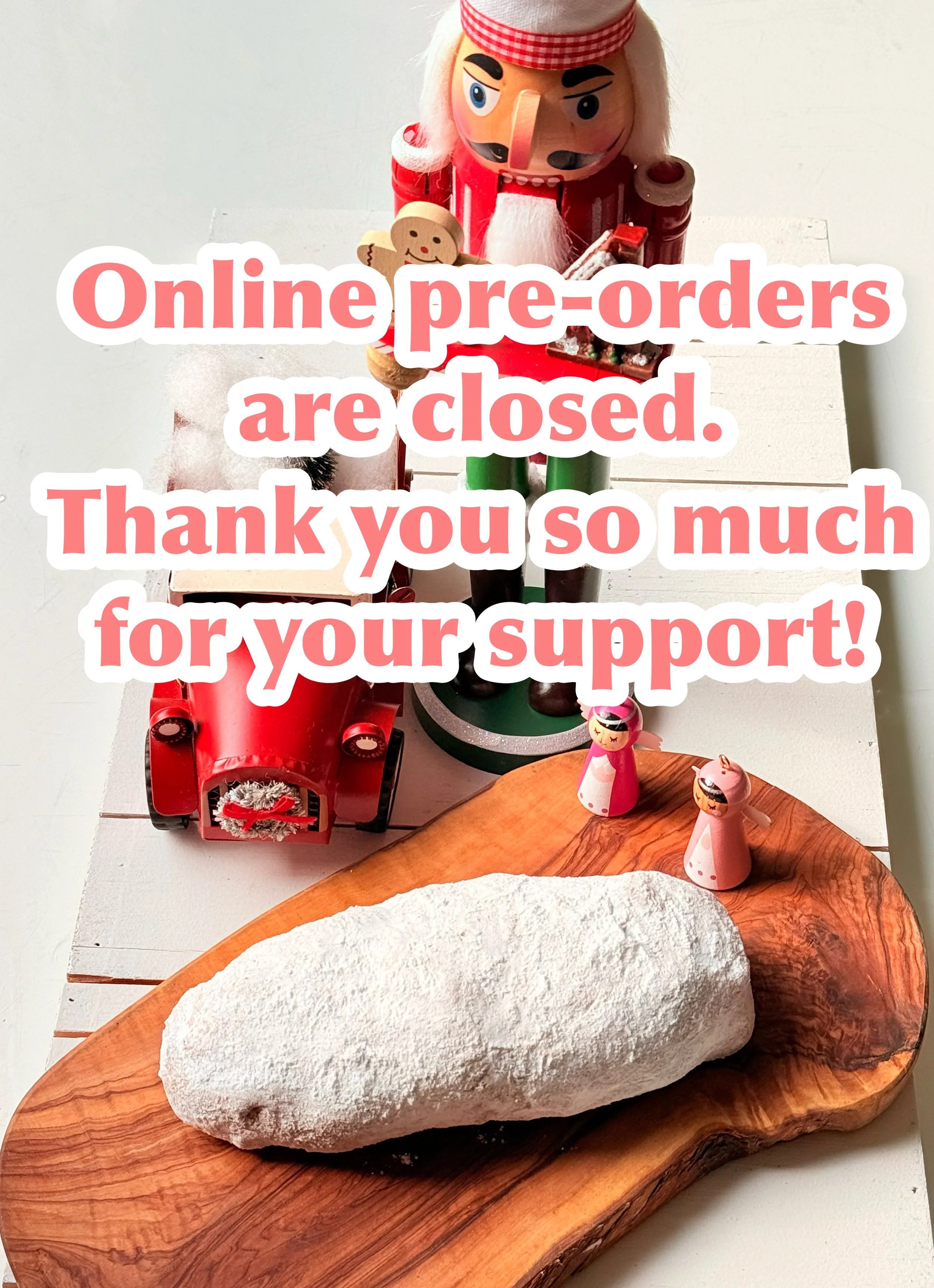 Thank you very much for all of your pre-orders for our Christmas Chestnut Stollen. We have now reached our planned number of orders, so online pre-orders are officially closed. We sincerely appreciate your support and interest! Our Christmas cakes and Bûche de Noël will be available for online pre-order starting next week—please look forward to them.