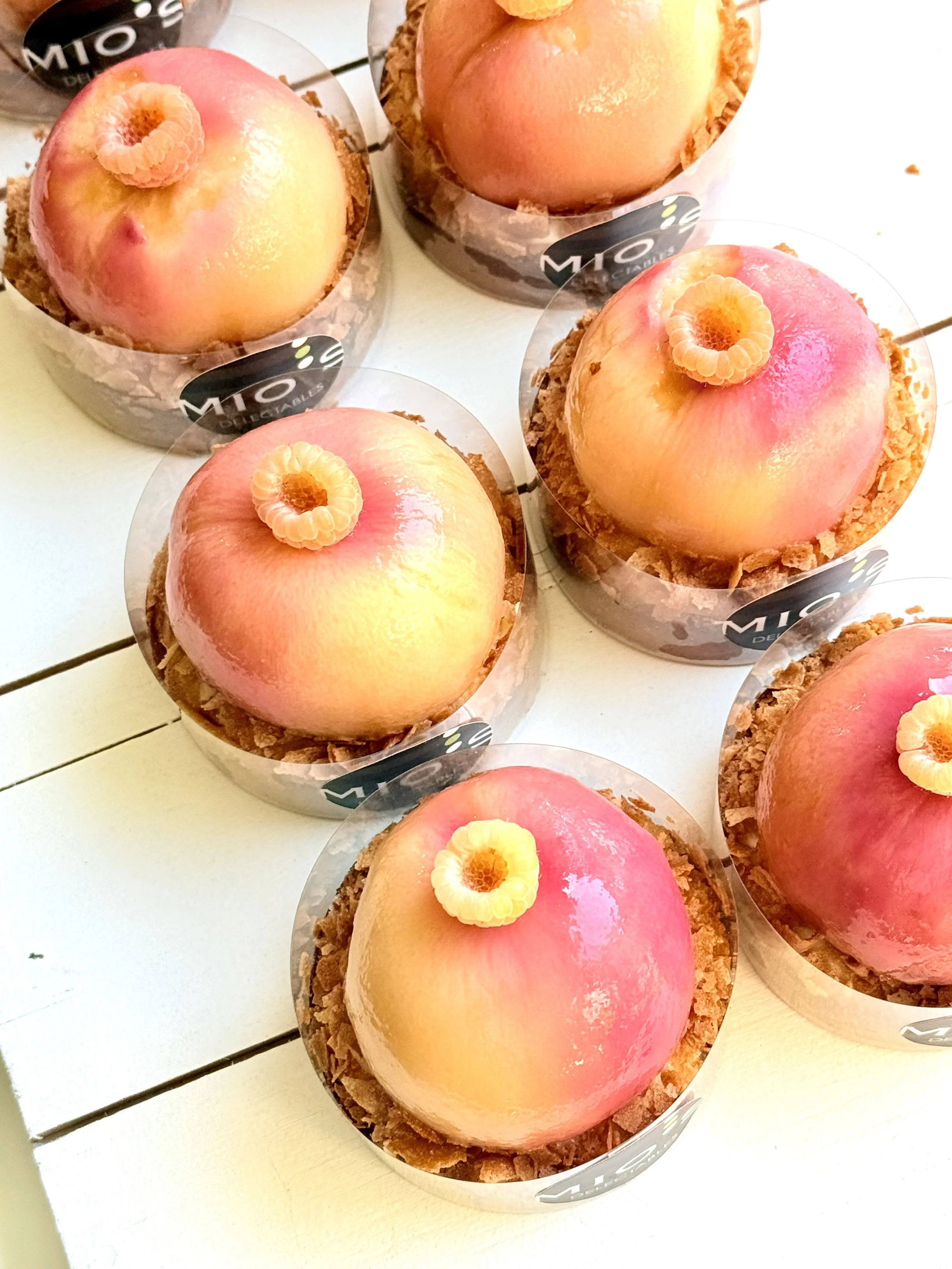 Featuring the fragrant Snow Princess white peaches from @bairdfamilyorchards, this classic summer tart is layered with delicate almond frangipane, silky custard cream, and luscious Fromage Cru. Topped with fresh raspberries and a touch of raspberry confiture for the perfect sweet-tart finish.