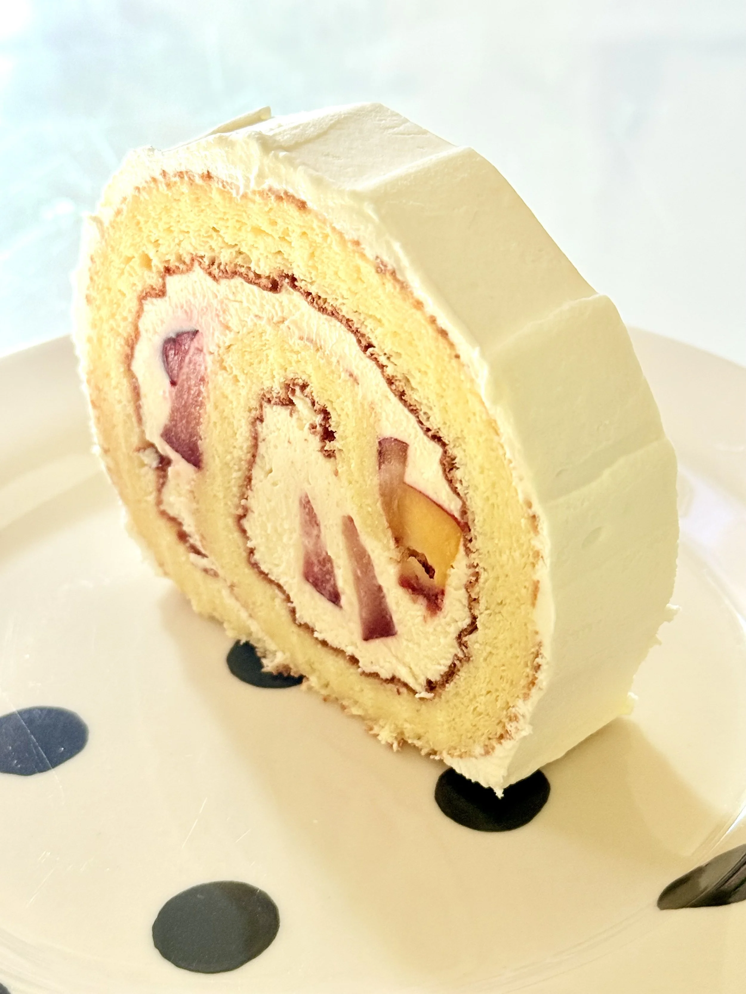 Plumcot Swiss Roll Cake with Apricot White Chocolate Ganache Cream