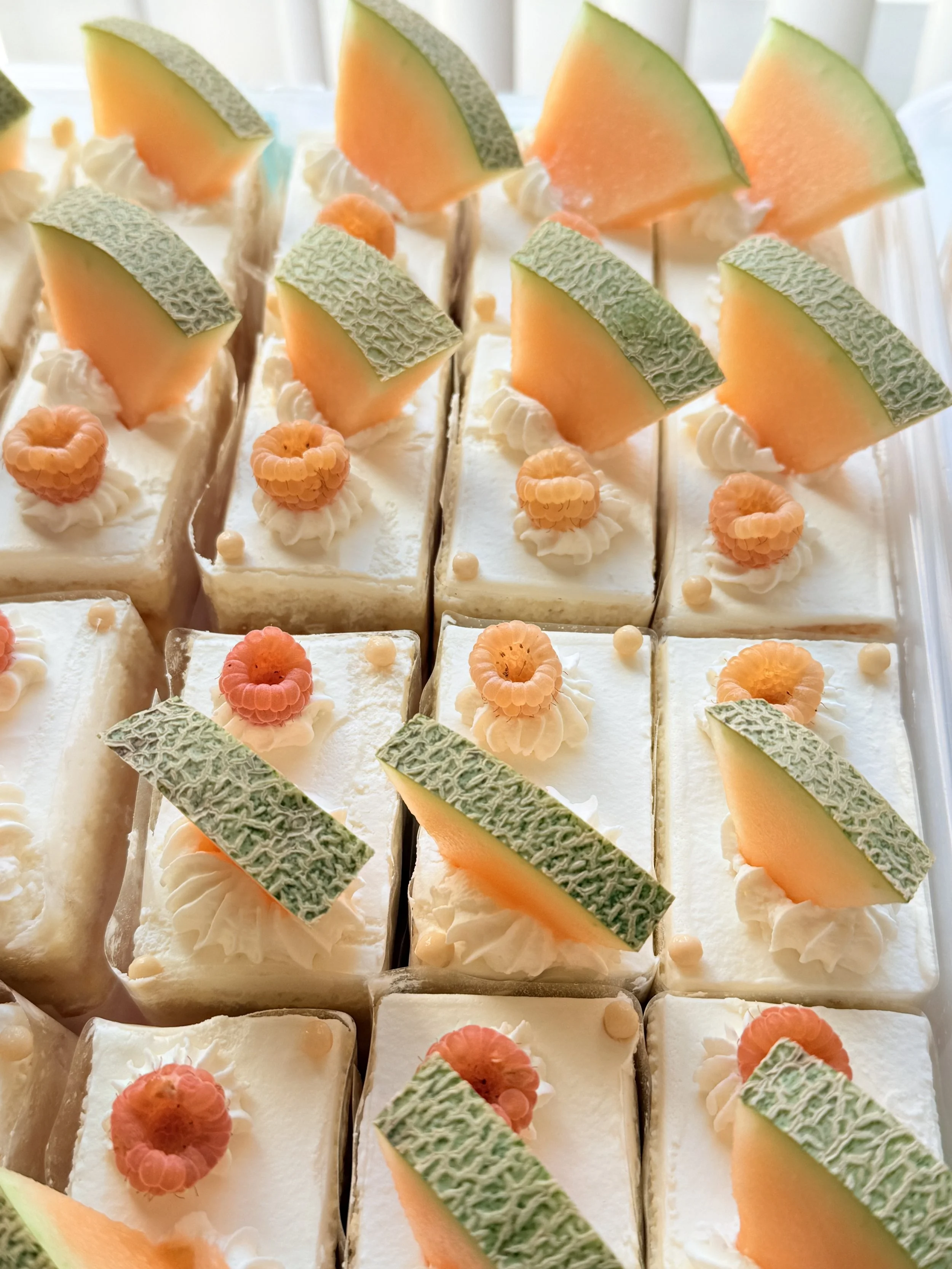A light and airy Japanese-style shortcake layered with fluffy vanilla sponge and fresh melon, paired with a delicate white plum confiture. A refreshing harmony of pure sweetness and gentle fruitiness.