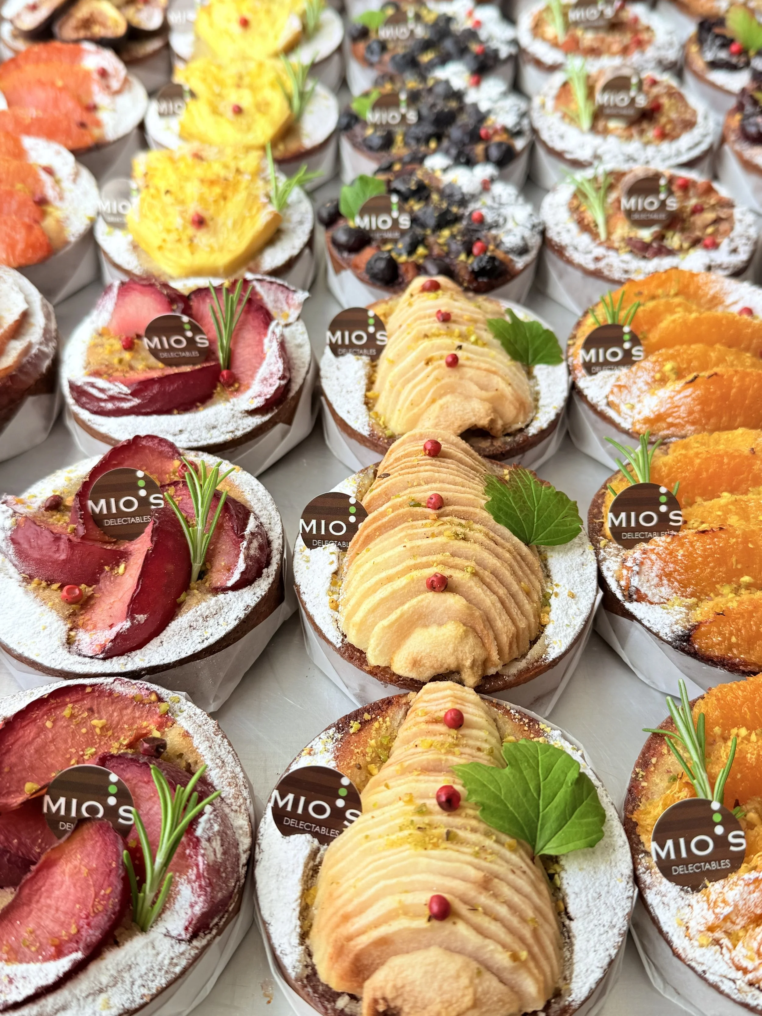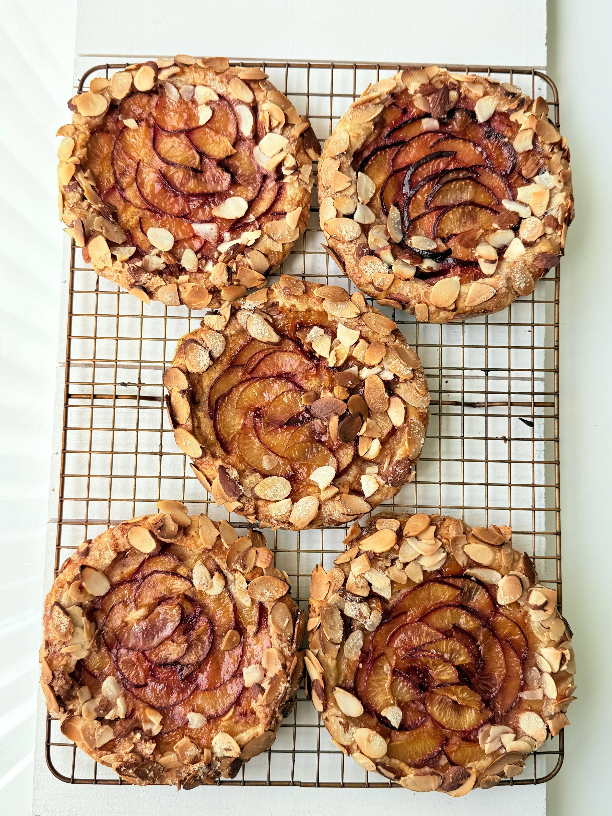 A buttery almond galette topped with sweet Italian plums and a layer of vibrant apricot confiture. Elegant, fragrant, and perfect for a refined dessert moment.