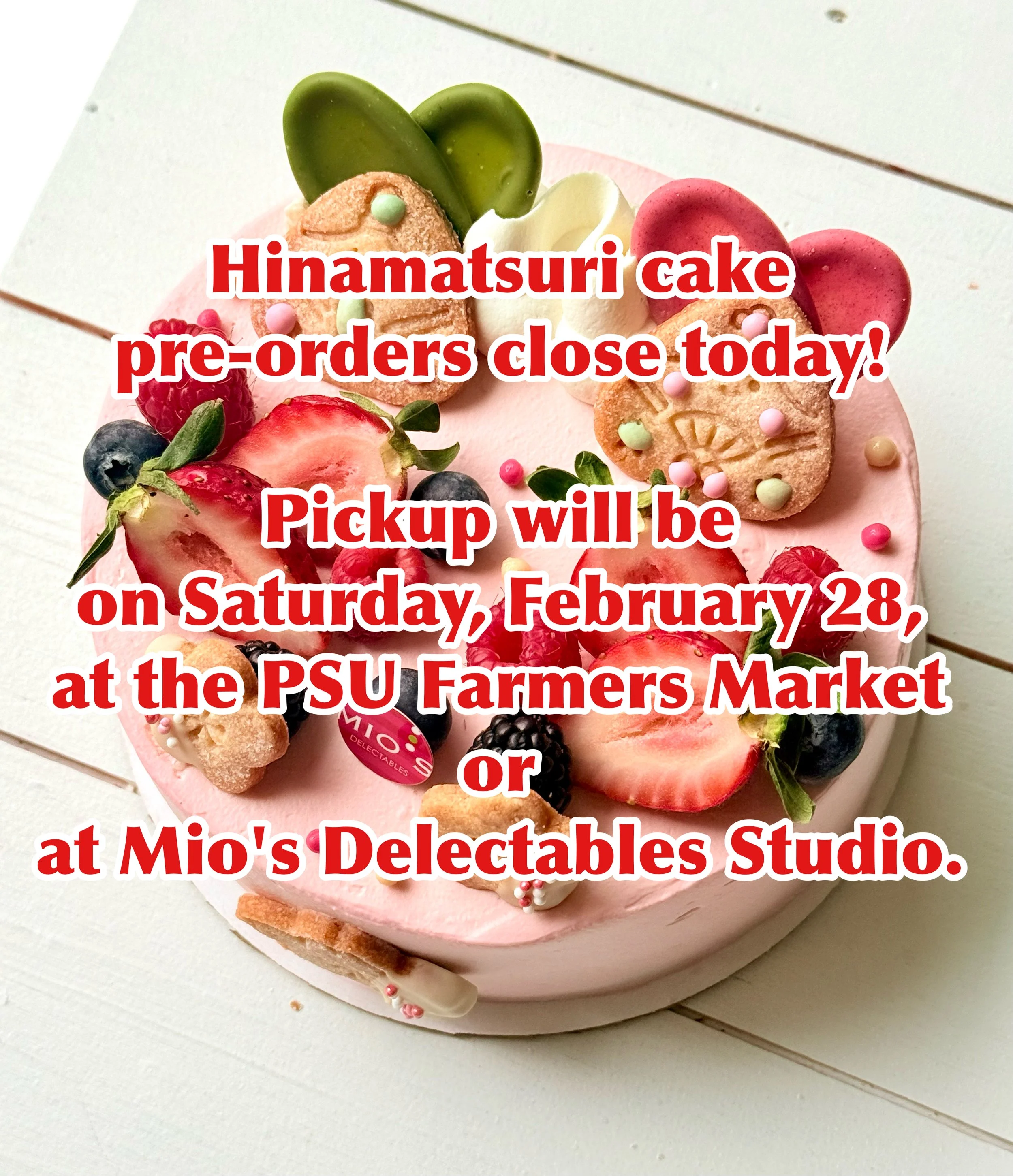 Please note that today, February 25, is the final day to pre-order Hinamatsuri cakes.