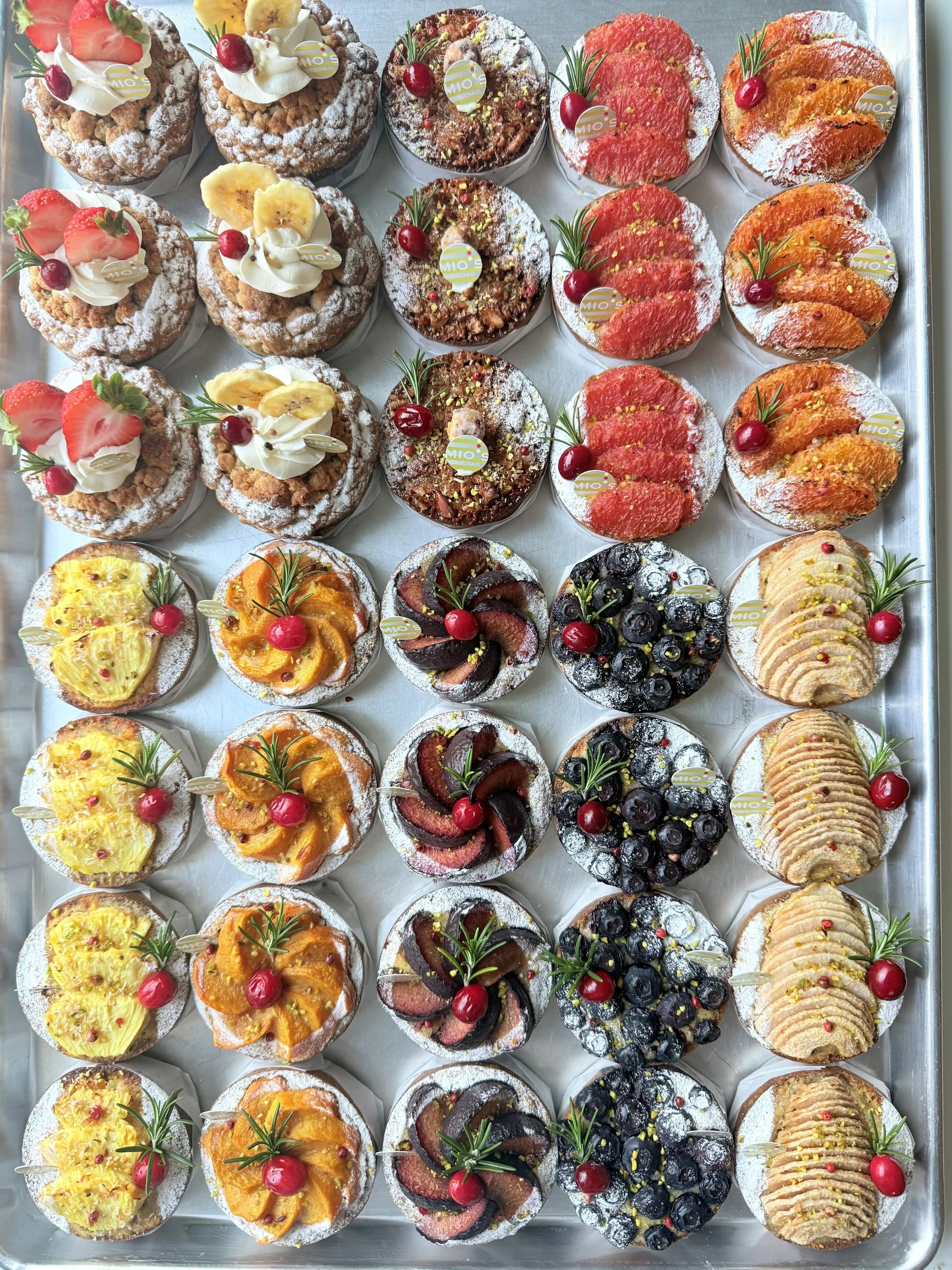 *BAKED GRAPFRUIT Tart w/ Kirsch soaked Pineapple and Marnelade de mandarine, 70% Bitter Chocolate