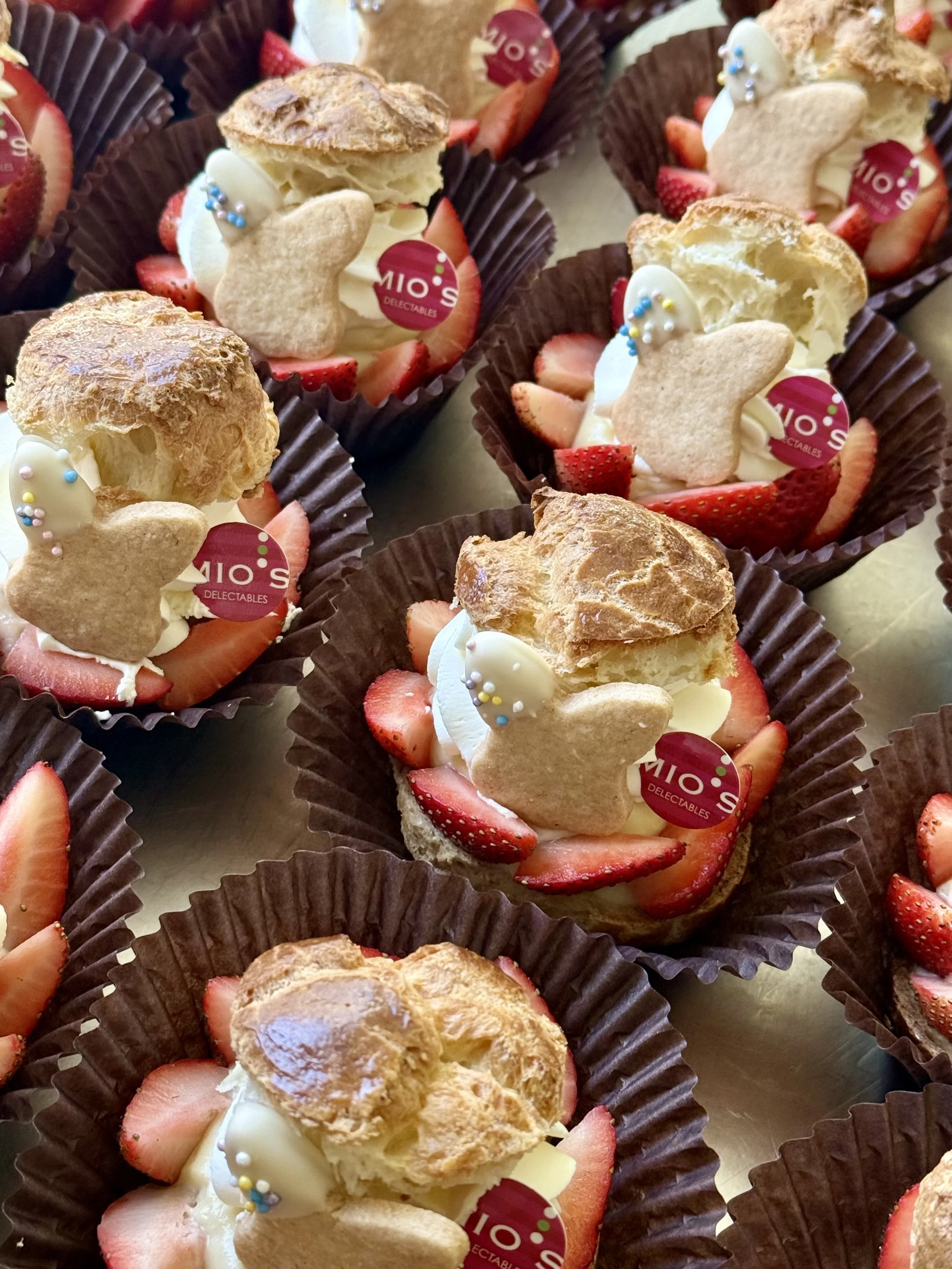 A delicate choux pastry filled with our house-made custard cream, fresh strawberries, and finished with a light lemon whipped cream.