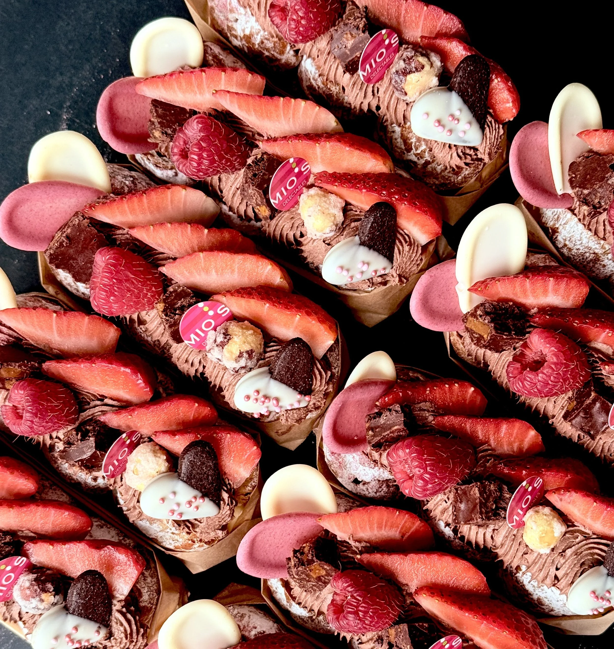 Classic choux pastry filled with fragrant vanilla custard, silky chocolate cream, and bright raspberry confiture.