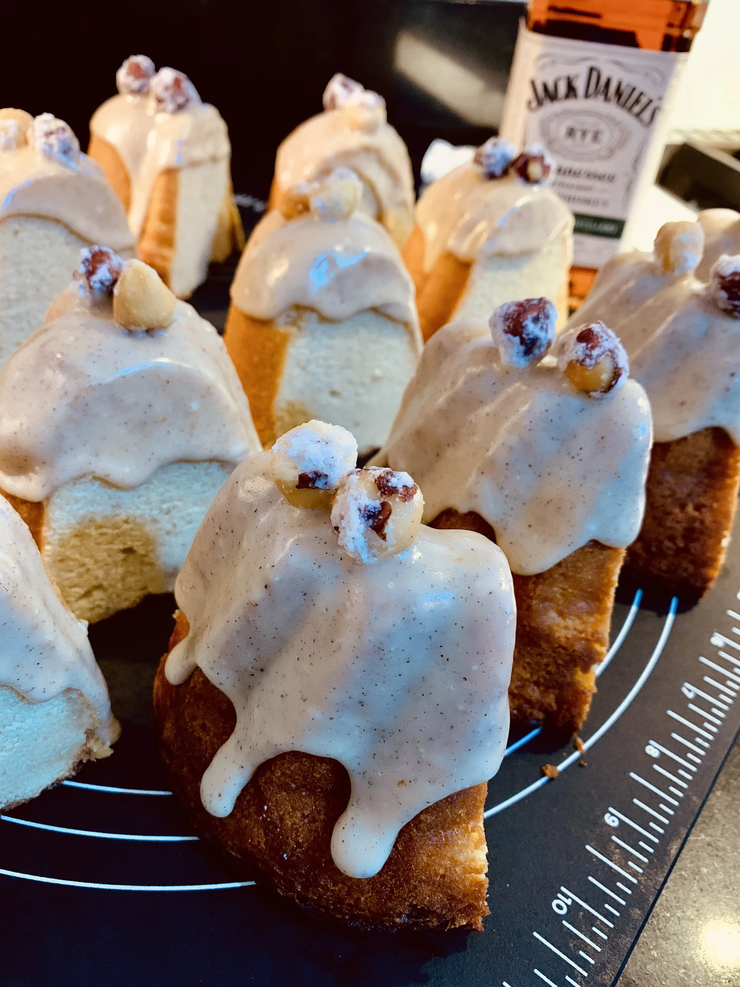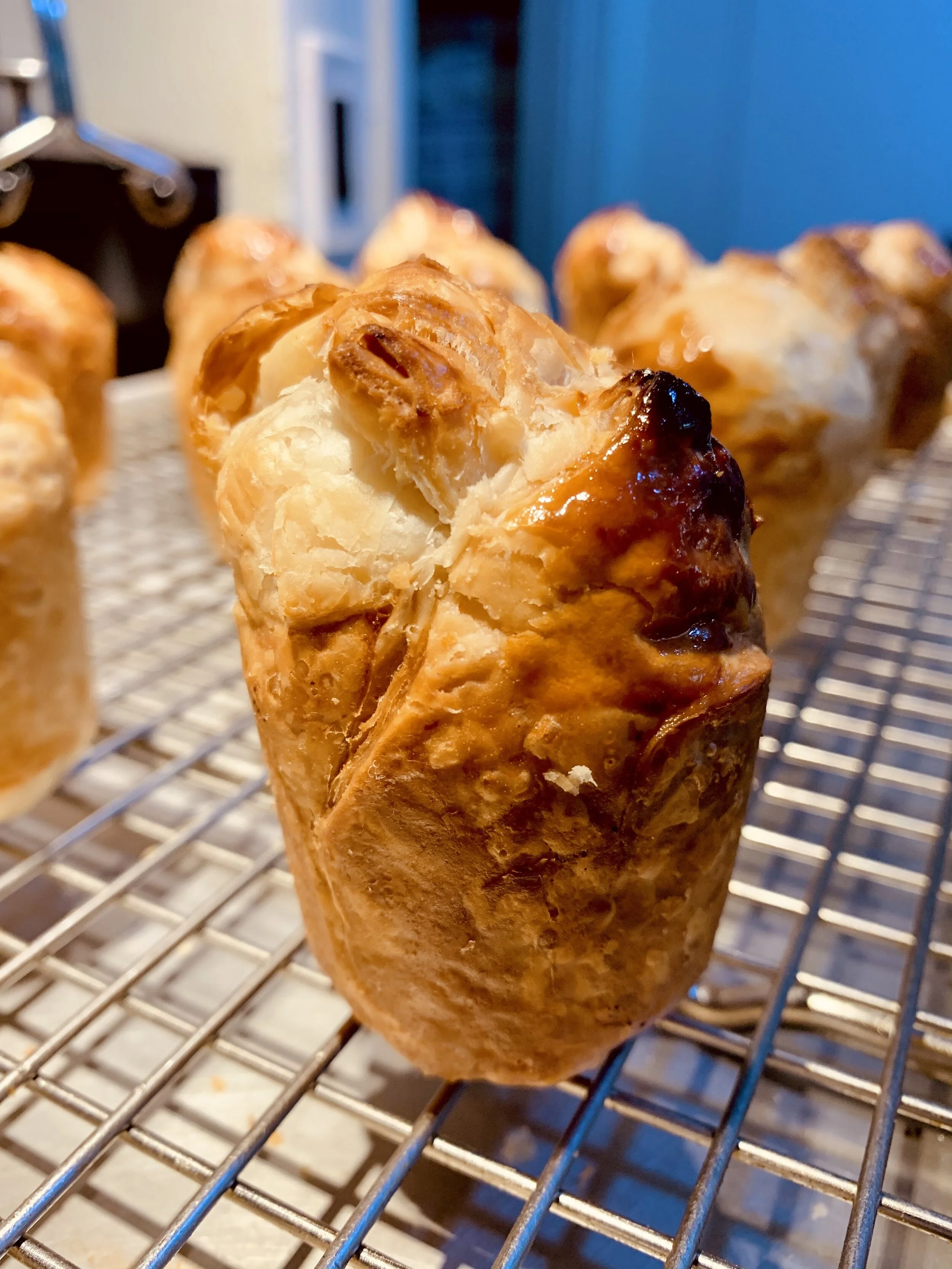 (a small French pastry flavored with rum and vanilla with a soft and tender custard center and a dark, thick caramelized crust.)