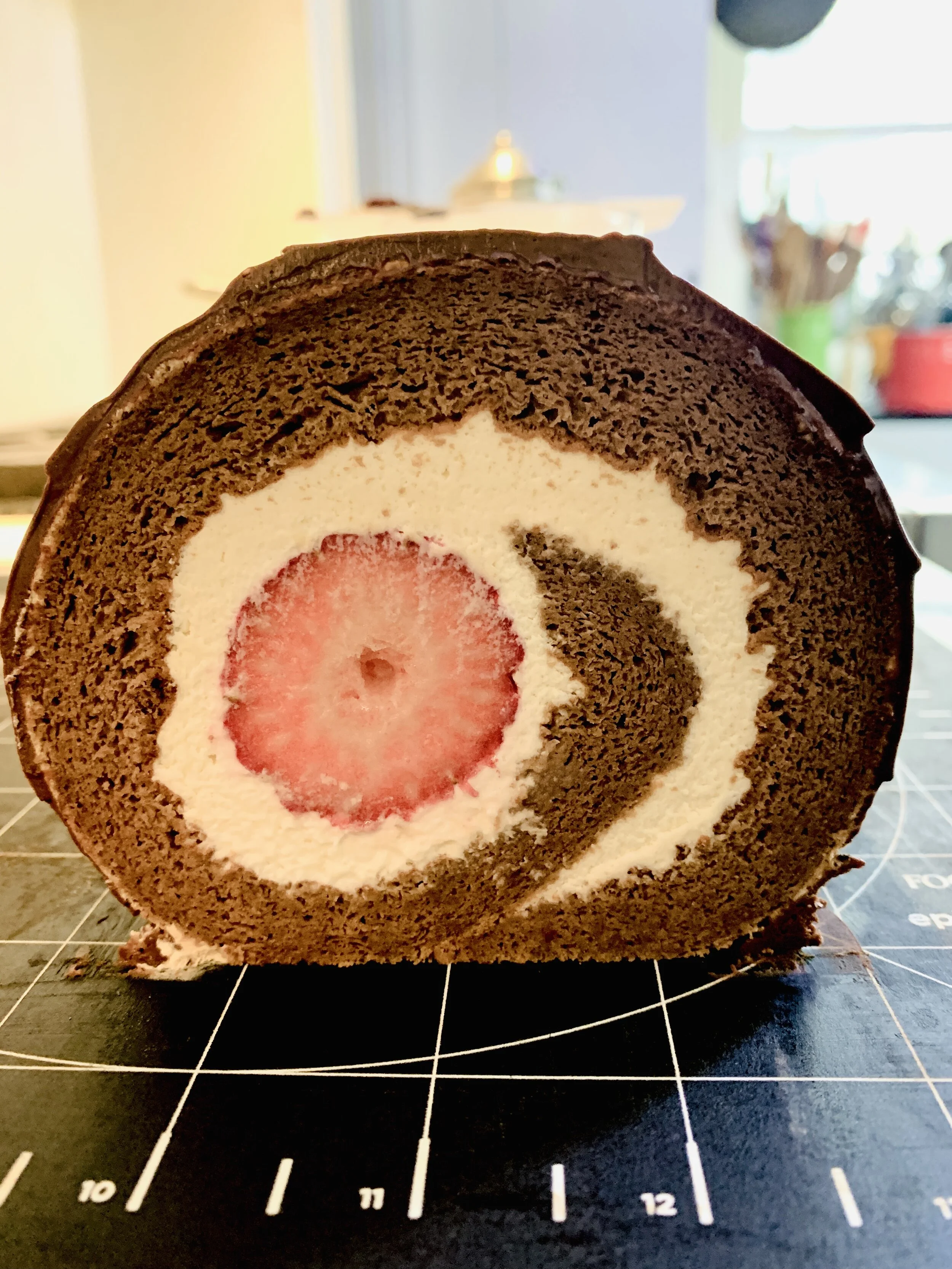 *Gluten-free Chocolate Swiss roll w/ Irish cream Cream & Fresh Strawberry