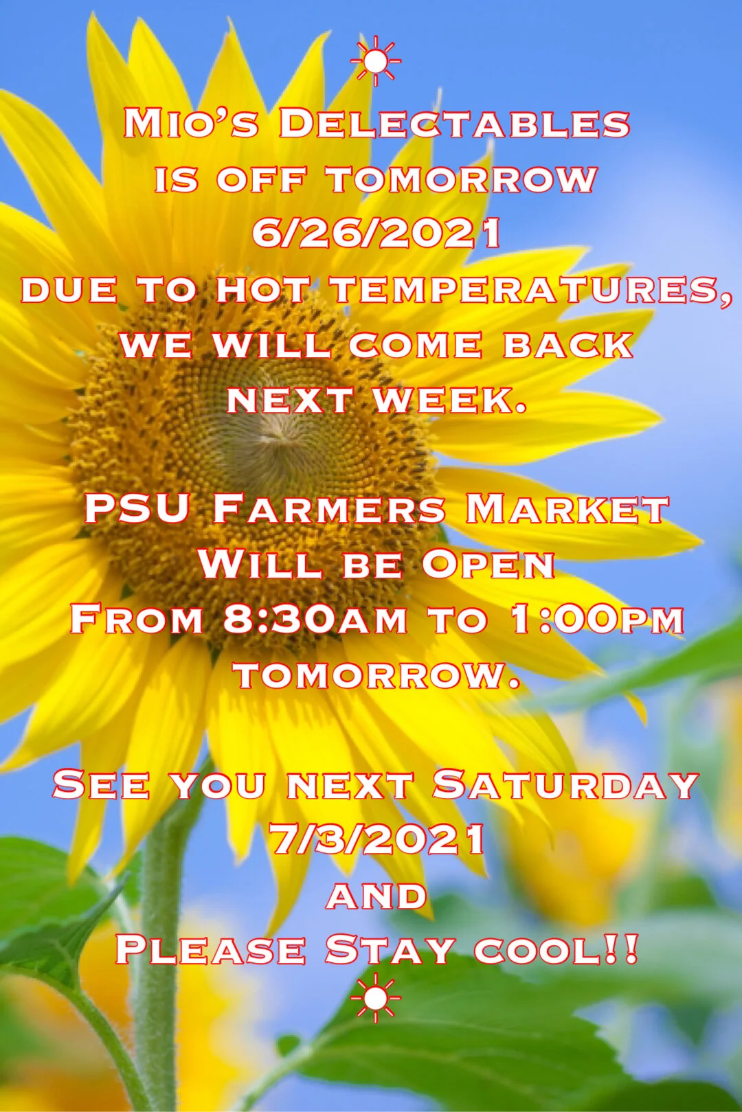 Saturday's Menu on 11.6.2021 (9:00 am-2:00 pm) @PSU Farmers Market