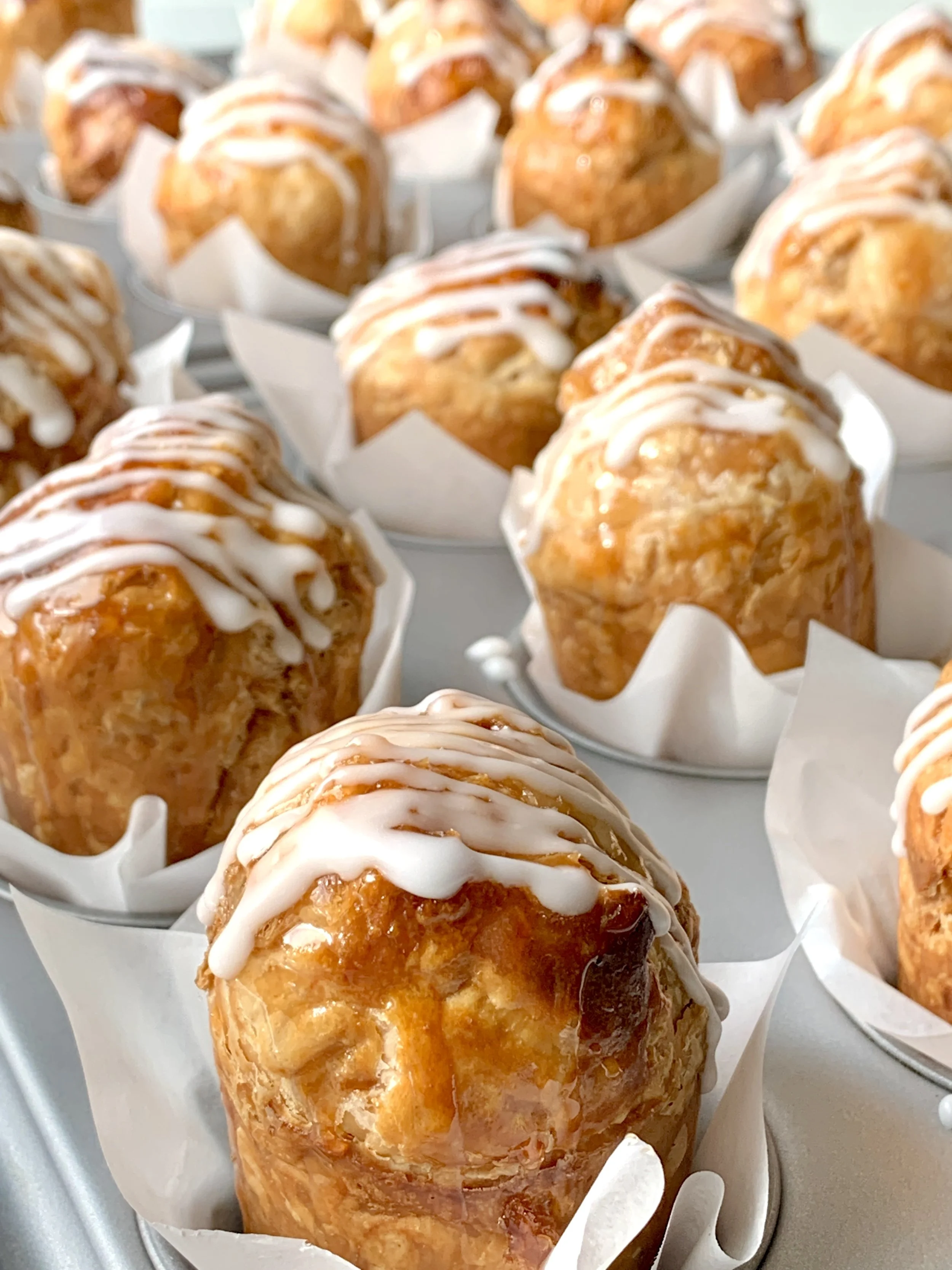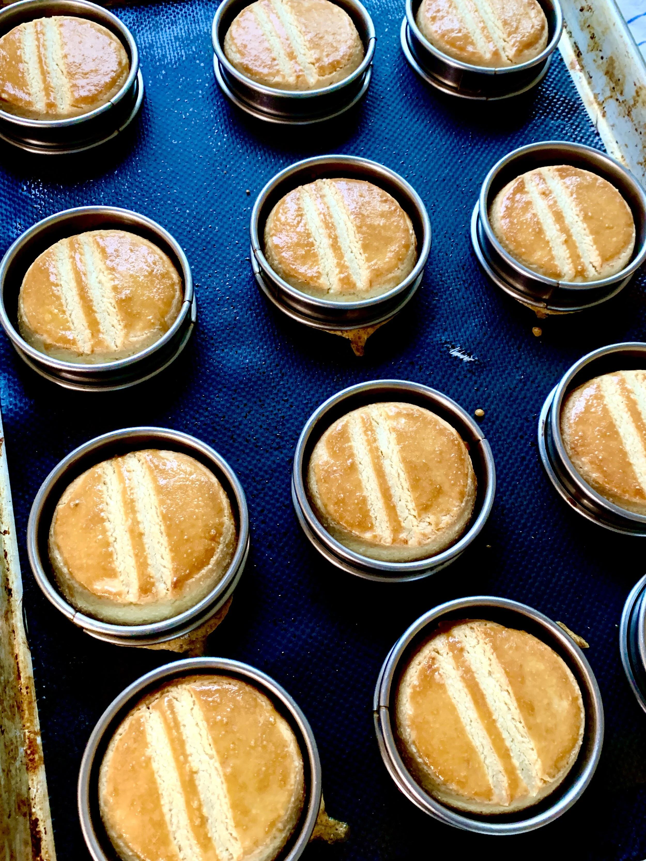 (a small French pastry flavored with rum and vanilla with a soft and tender custard center and a dark, thick caramelized crust.)