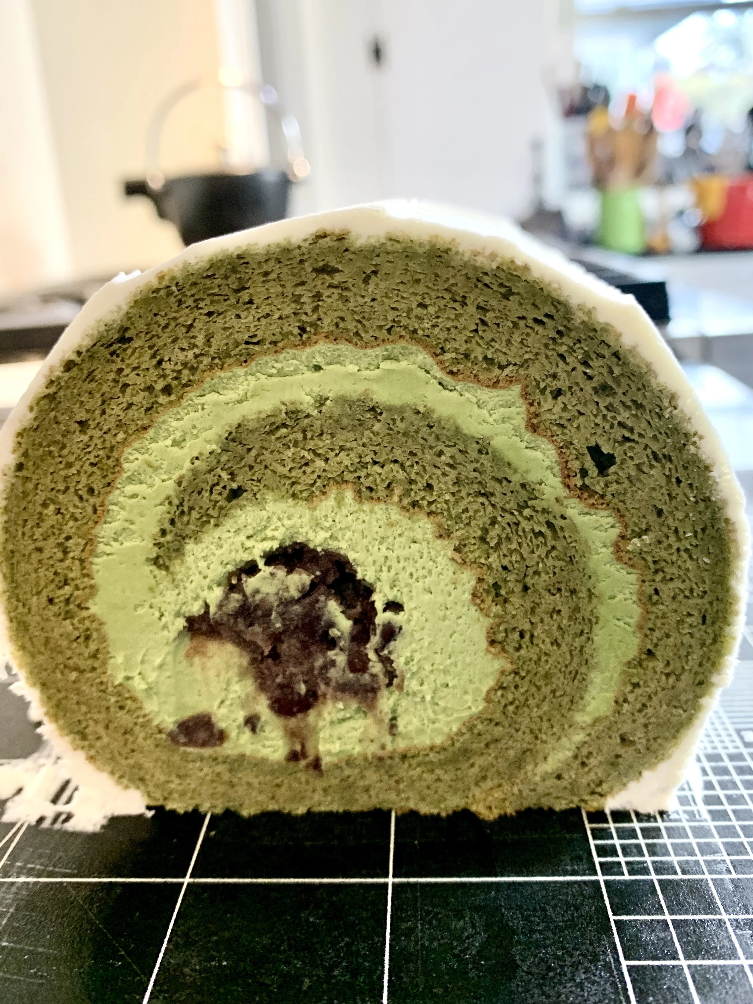 *Gluten-free Matcha Swiss roll Cake w/ Matcha Cream & Sweetened Azuki Beans